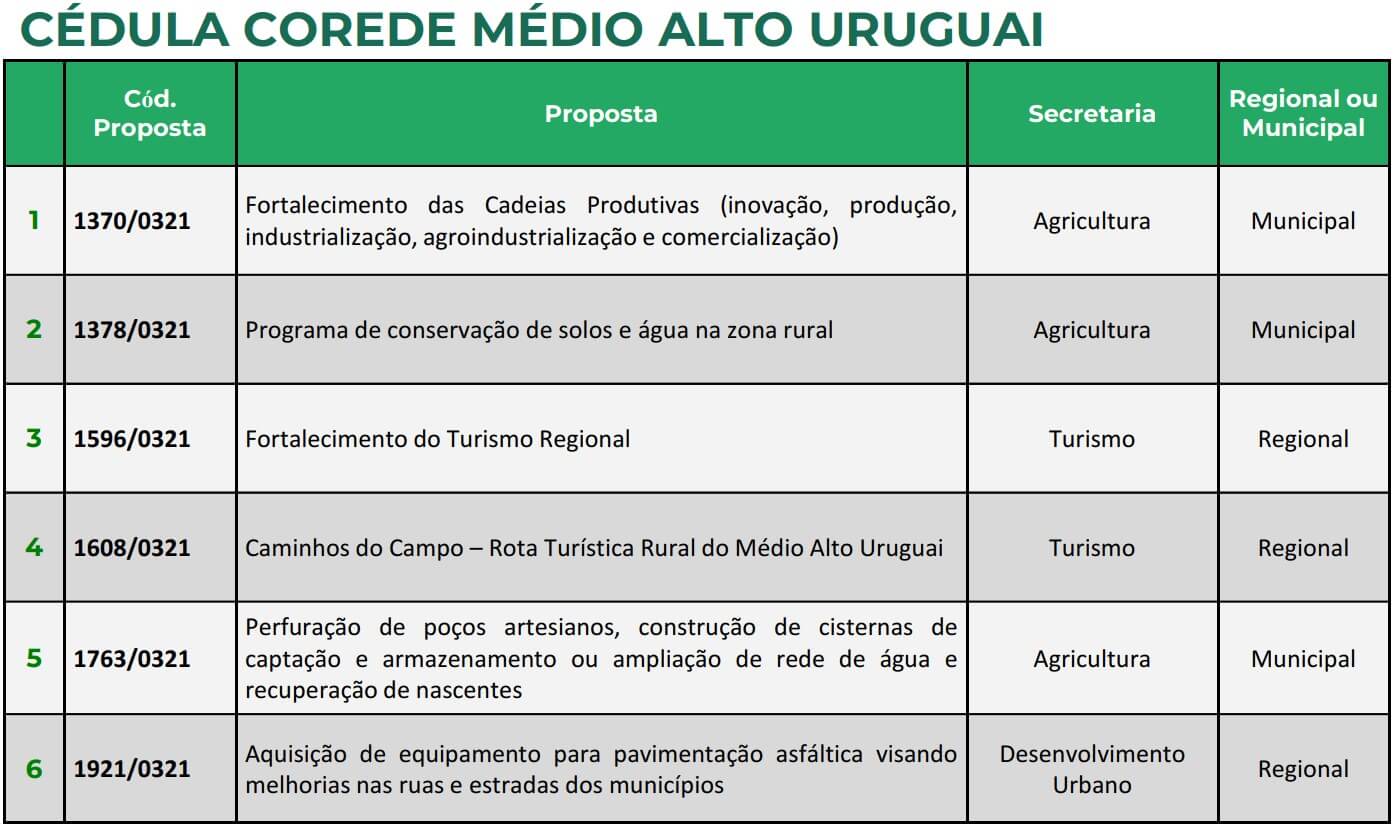 A cédula de votação do Codemau foi homologada pelo Governo do Estado. A próxima etapa da Consulta Popular será a votação, que acontecerá de 06 a 10 de outubro de 2025. A população toda é chamada a votar, de Frederico Westphalen e de toda a região, afim de escolher as demandas que entenderem como prioritárias.