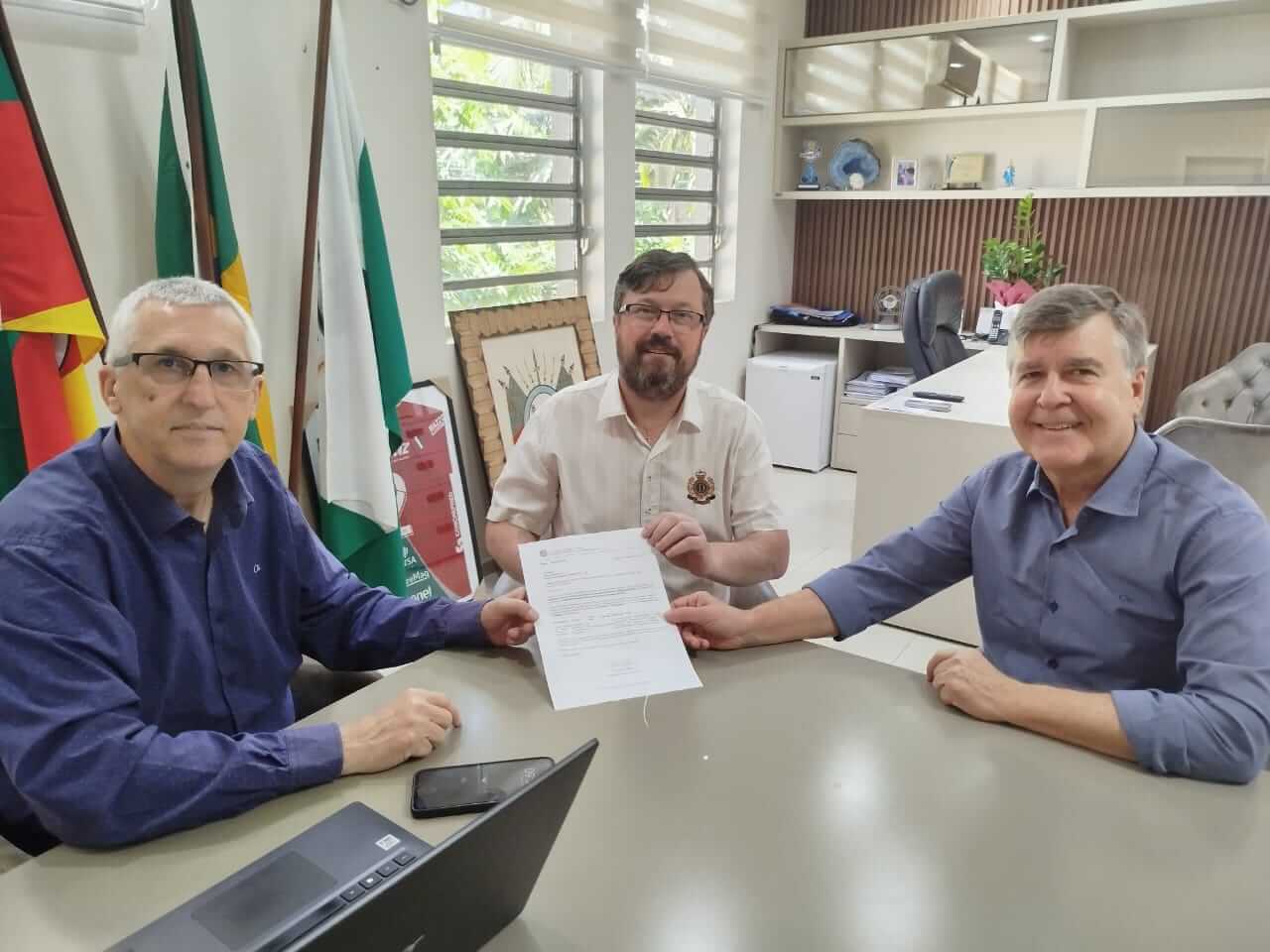 O prefeito em exercício de Frederico Westphalen, Chester Francescatto, acompanhado do secretário municipal da Administração, Ernesto Baggio, recebeu na manhã desta terça-feira (04), o coordenador regional do gabinete do deputado federal Marcel Van Hattem (NOVO-RS), Arthur Lorentz, ex-vice-prefeito de Santa Rosa.