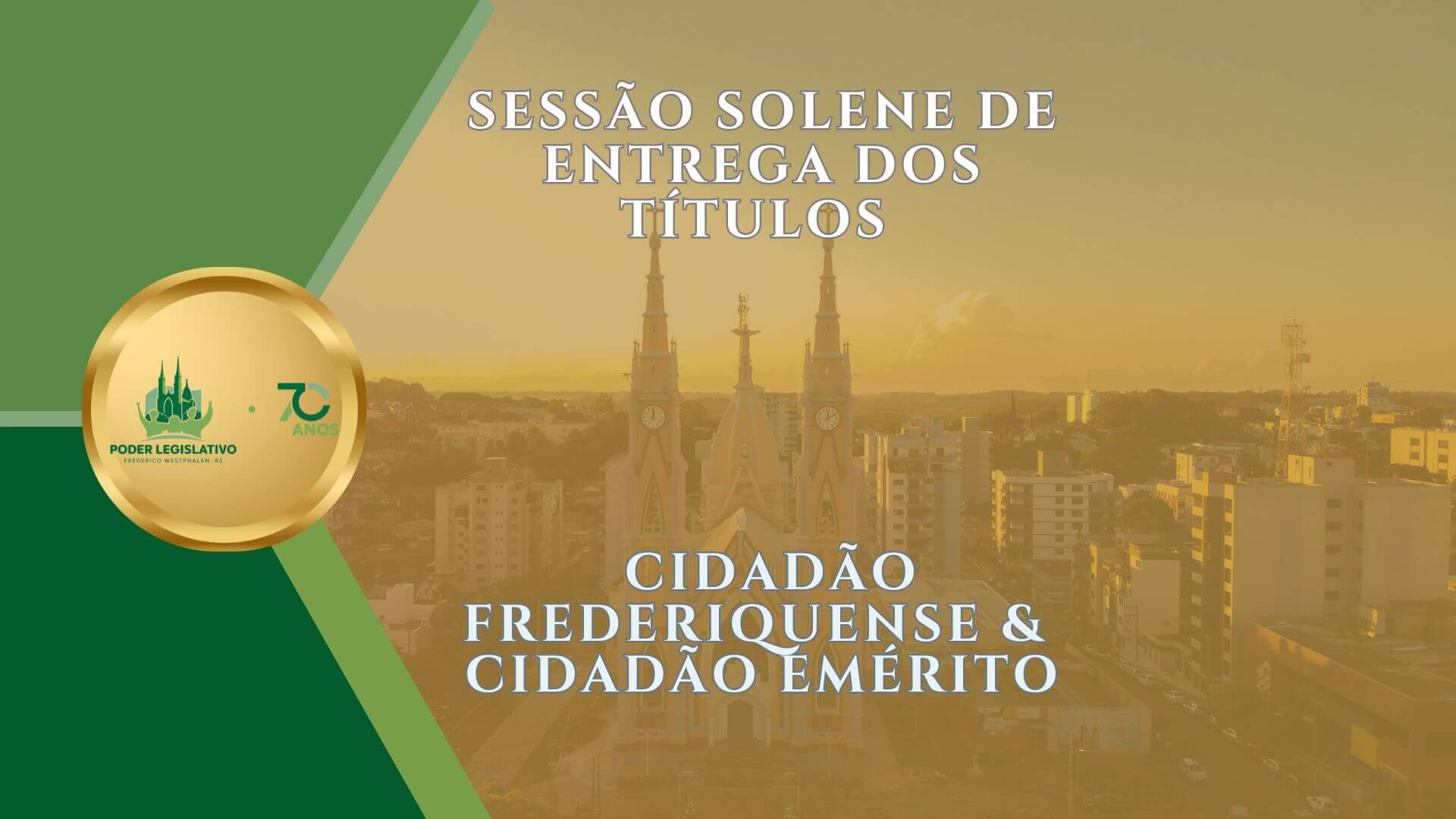 Na Sessão Solene também foi entregue o Título de “Cidadão Emérito do Município de Frederico Westphalen”. A honraria foi instituída pela Lei Municipal Nº 5.469, de 28 de outubro de 2025, com o objetivo de reconhecer pessoas naturais de Frederico Westphalen que, comprovadamente, tenham prestado relevantes serviços ao município, destacando-se pelo espírito público, empreendedorismo, contribuição econômica, cultural, educacional, esportiva, assistencial, institucional ou comunitária.