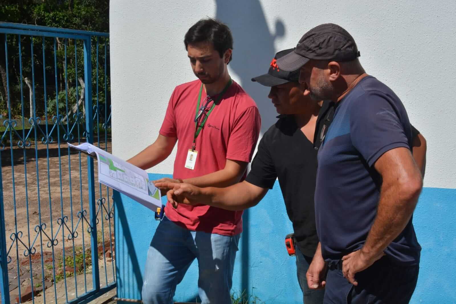 O engenheiro da Secretaria de Planejamento (SEPLAN) Jardel Konzen, acompanhado da diretora da Escola Duque de Caxias, professora Lucinara Massolino, esteve na instituição juntamente com representantes da empresa vencedora da licitação do projeto de reforma, ampliação e modernização. A obra contará com um investimento de R$ 1.140.000,00 (um milhão, cento e quarenta mil reais), destinado à qualificação dos espaços físicos da escola, proporcionando melhores condições para o desenvolvimento das atividades pedagógicas.