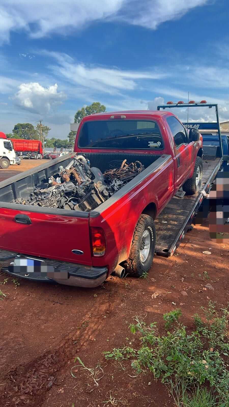 Durante as ações, os policiais receberam uma informação anônima de que uma caminhonete estaria escondida nos fundos do pátio de uma empresa às margens da BR-386. No local, a guarnição localizou uma caminhonete, com quatro motores transportados na caçamba.