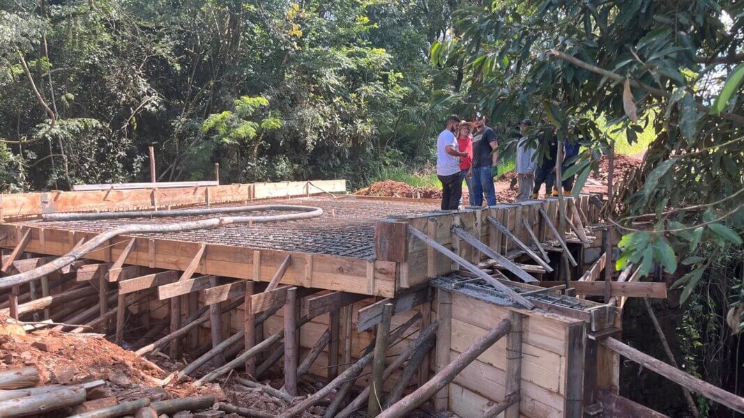 A nova estrutura está sendo executada em concreto armado, uma solução que garante maior durabilidade e segurança, beneficiando diretamente moradores e produtores rurais que utilizam diariamente a via.