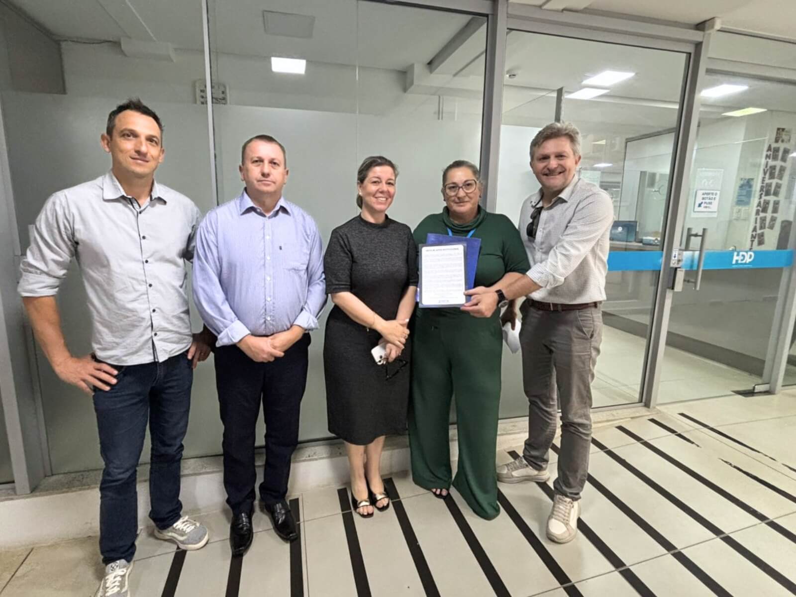 Na tarde desta quarta-feira, dia 23, a diretoria da Associação Empresarial ACI/CDL de Frederico Westphalen (AEFW) realizou a entrega de uma nota de apoio institucional à diretora do Hospital Divina Providência (HDP), Lisete Cristina Bison. Estiveram presentes no momento o presidente da AEFW, Alessandro Dal Piva, o vice-presidente Mauro Cezar Rosa, e os diretores Sandra Basso Vendruscolo e Igor Senger.