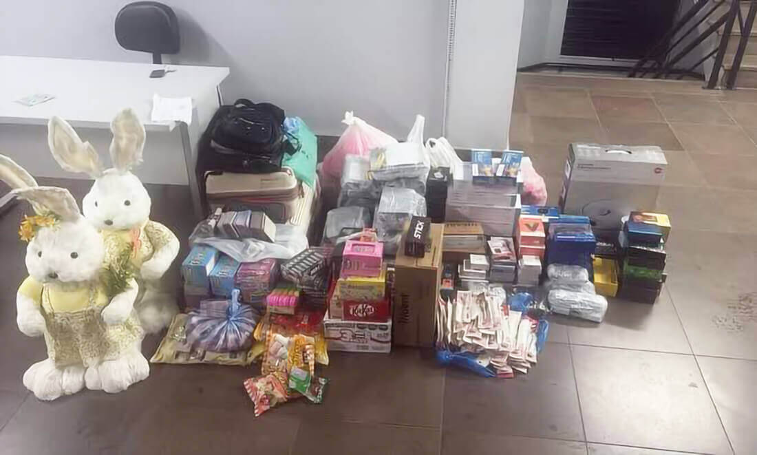 Além dos eletrônicos, foram apreendidas 145 bonecas, 32 perfumes, 55 bombas de chimarrão e pacotes de doces.