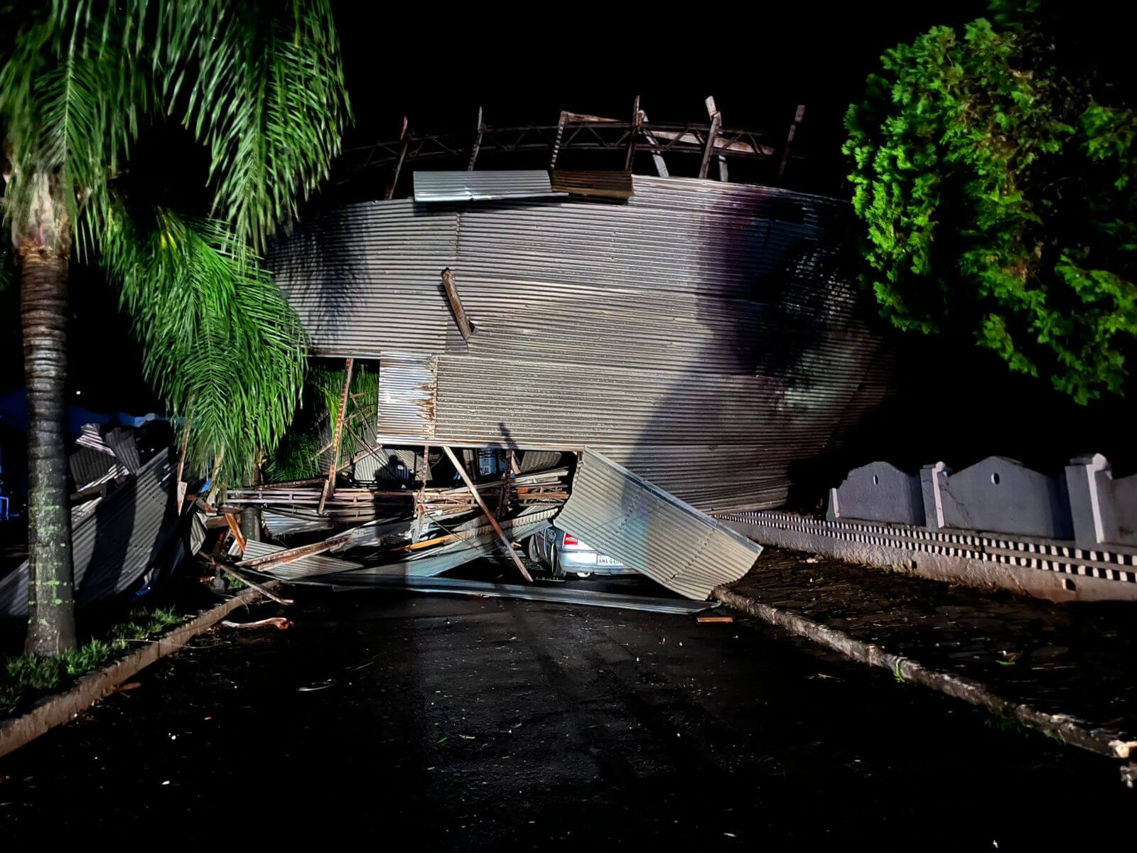 Também houve o lançamento do telhado de uma casa noturna sobre a Avenida Independência, atingindo dois veículos e danificando postes. A cobertura de um ginásio de esportes foi arremessada sobre a Rua Moisés da Silva Martins, provocando danos à fiação elétrica.