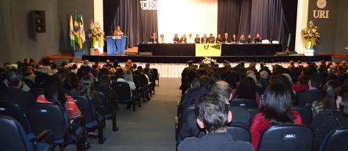 Cerca de 80 estudantes comemoraram a conquista do diploma na presença de autoridades locais, direção, professores, funcionários, familiares e amigos no Salão de Atos da URI/FW.