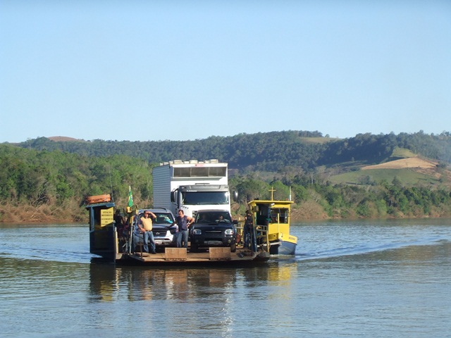 A Navegação Porto Feliz, que realiza o trabalho de travessia com a balsa entre Mondaí (SC) e Vicente Dutra (RS), a paralisação iniciou as 9h30min desta segunda (23).
