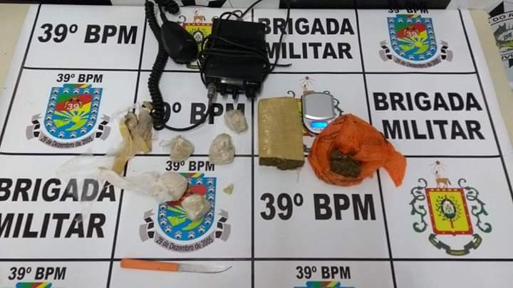 O condutor e passageiros foram identificados sendo o homem A.L.K.W. e a mulher R.S., de nacionalidade Argentina, além do acusado R.O.O. Os policiais da 1ª Companhia, do Pelotão de Operações Especiais e o Efetivo do Administrativo do 39º BPM e efetuaram uma varredura no terreno baldio ao lado da residência do acusado, onde foi localizado diversas pedras de crack pesando 193 gramas, um tijolo e uma bucha de maconha pesando 395 gramas , além de uma balança de precisão e um rádio comunicador marca cobra 19DXIV.