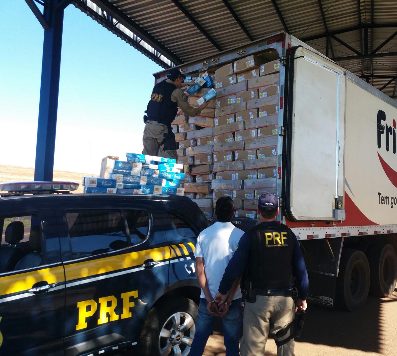A PRF encaminhou o veículo com a carga de cigarros para a Receita Federal e o homem preso para a Delegacia da Policia civil para registro.