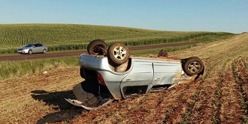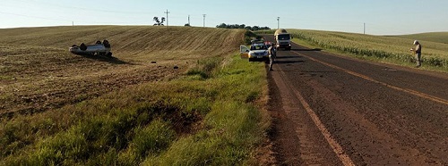 Conforme o comando rodoviário da Brigada Militar, o carro estava no sentido Tenente Portela para Miraguaí por volta das 7h e após uma curva do km 19 o condutor perdeu o controle do veículo e capotou fora da pista.