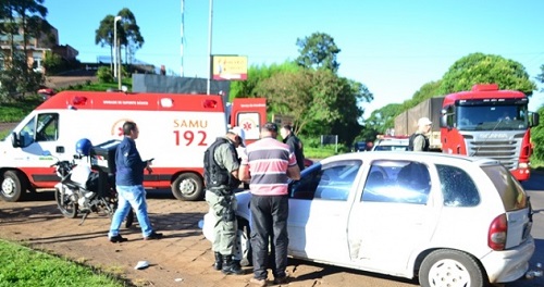 Uma colisão entre um Chevrolet/Corsa, com placas de Frederico Westphalen, e uma Yamaha/Factor, com placa de Santo Ângelo, deixou o condutor da motocicleta ferido. O acidente aconteceu por volta das 8h10min desta terça-feira, 28, na BR-386, na altura do Posto 34, em FW.
