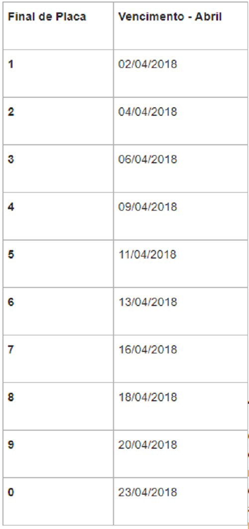 Os contribuintes que não pagarem o IPVA 2018 antecipadamente (quitação em janeiro ou parcelamento) terão o calendário limite para pagamento encerrando no mês de abril, conforme o final da placa dos veículos.