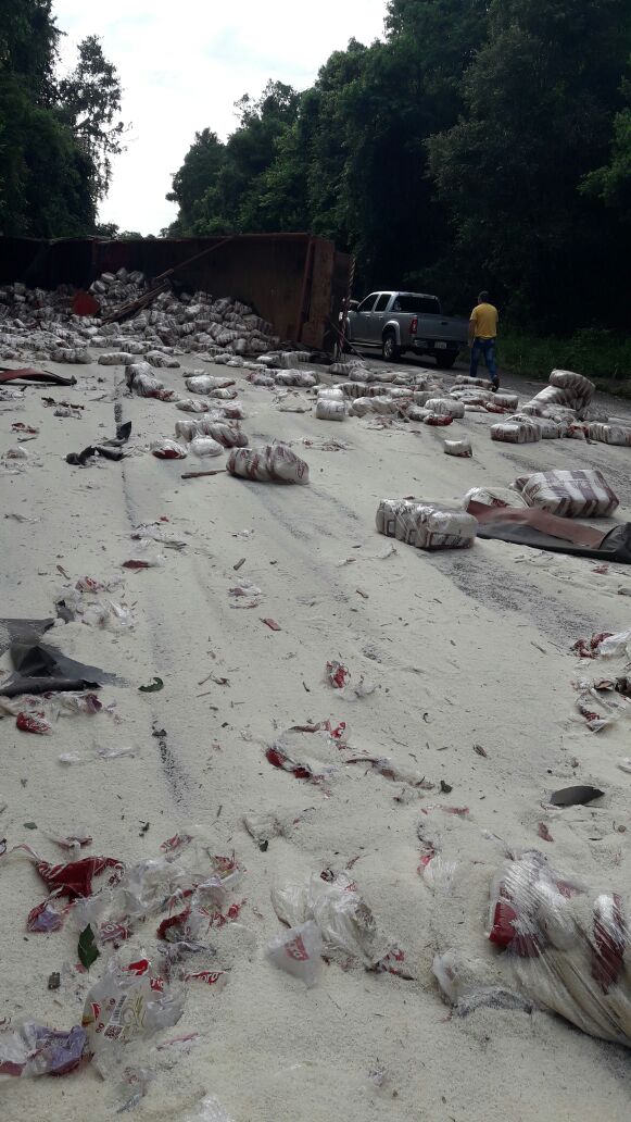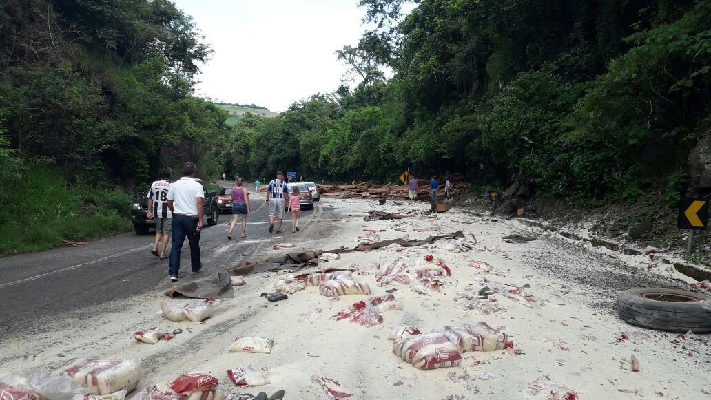 Após os choques entre os veículos, as cargas das duas carretas ficou espalhada em uma das vias da rodovia. Além disso, o veículo de carga que transportava arroz ficou tombado, o que gerou a interrupção do tráfego. No acidente também se envolveu um Chevrolet/Cobalt, com placas de São Leopoldo, que trafegava atrás de uma das carretas e acabou atingido na lateral por um dos veículos.