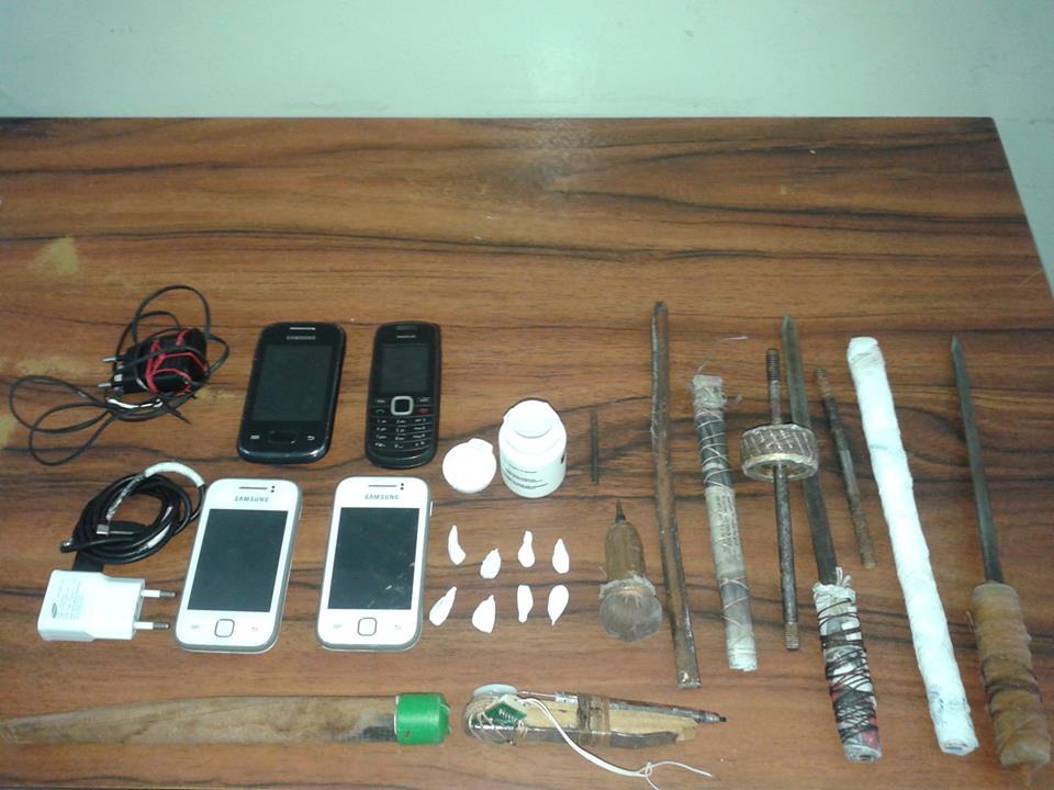 Em trabalho conjunto com a SUSEPE, a Brigada Militar realizou nesta terça-feira (30), revista em duas celas, sendo revistados 21 presos e aprendidos 04 aparelhos celulares, 02 carregadores, 01 máquina artesal de tatuagem, 03 estoques de aproximadamente 20cm de lâmina cada e 08 buchas de substância com características de cocaína.