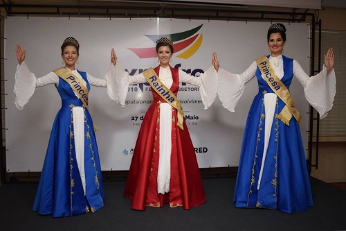 Outro momento importante da noite, contou com a apresentação do traje de gala e de passeio das soberanas, que darão um toque especial com a sua elegância, delicadeza e inovação.