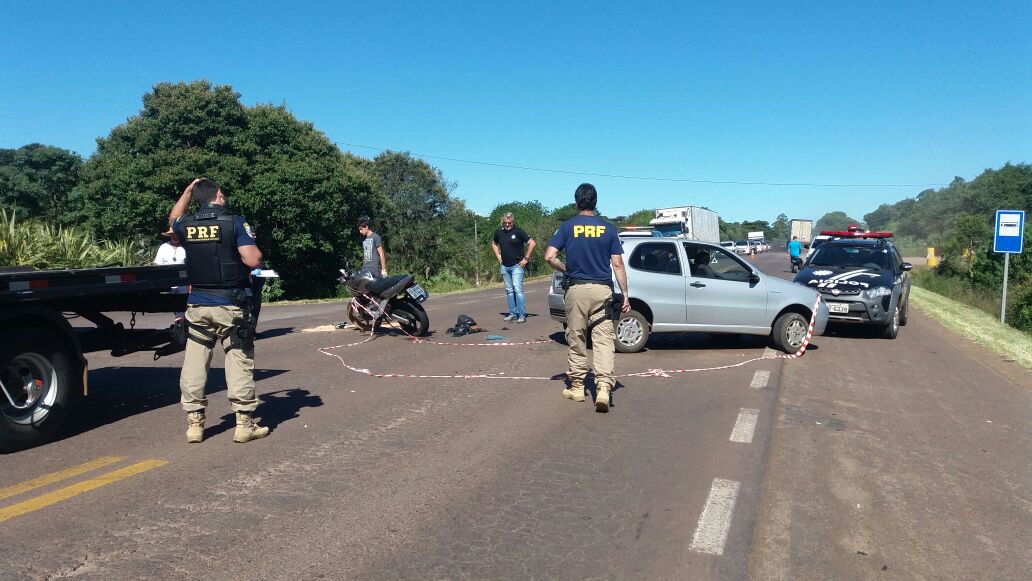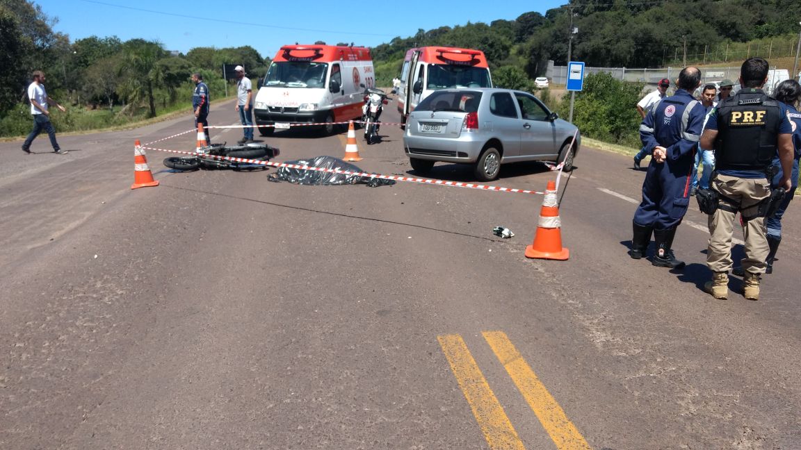 Os policiais foram avisados sobre um acidente no início da tarde. No local, identificaram que uma moto CBX 250 e um Pálio, ambos com placas de Carazinho, haviam colidido.
