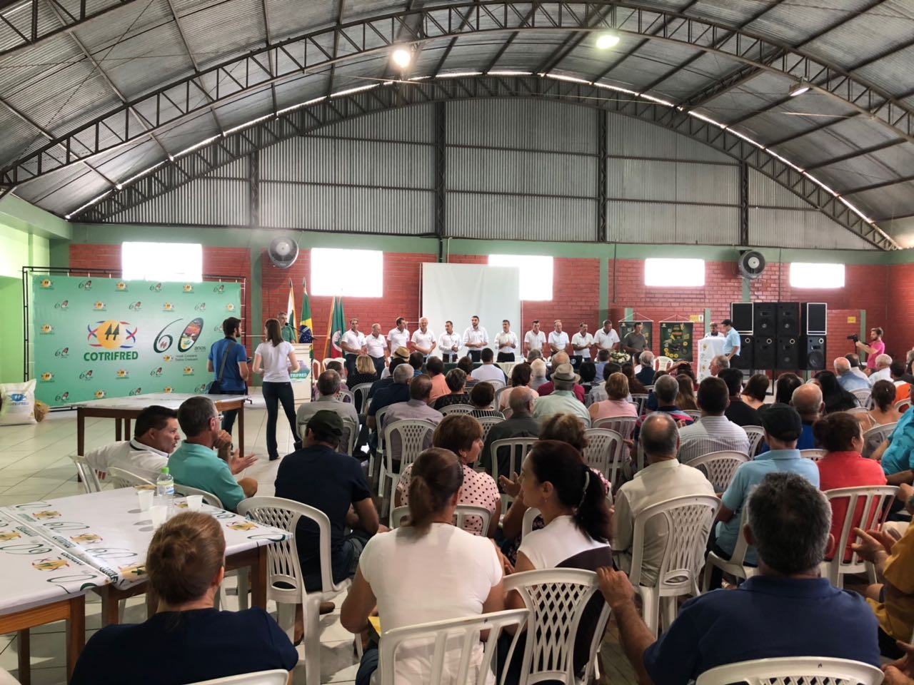 O presidente da Cotrifred, Elio Pacheco fez a apresentação de alguns números referentes ao ano de 2017. Presente em oito municípios nas atividades de recebimento de grãos, agropecuária, supermercado, fábrica de ração, abatedouro de bovinos e suínos e recebimento e comercialização de leite, o faturamento da cooperativa em 2017 foi superior a R$ 112 milhões, um crescimento de 11,53% em relação ao ano anterior.