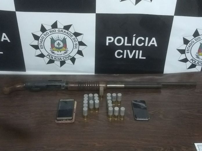 Nas buscas realizadas em uma casa na cidade de Santo Augusto a polícia prendeu um indivíduo de 20 anos de idade. Nessa residência os policiais localizaram uma espingarda calibre 12 e munições (Ele também possuía prisão preventiva pelo delito de tráfico de drogas).
