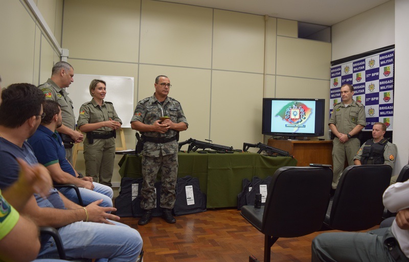 Na tarde desta terça-feira, 24 de abril, o 37º Batalhão de Polícia Militar de Frederico Westphalen realizou uma solenidade para agradecer à comunidade a colaboração para que fossem adquiridos 86 coletes balísticos e quatro fuzis de marca nacional, que serão empregados em seus 15 municípios de abrangência no Norte do Rio Grande do Sul. “Fuzil só se combate com fuzil, é desleal não ser assim. Todos atualmente têm armas curtas, mas o novo armamento dá uma tranquilidade para agir”, expôs o comandante do 37º BPM, major Alexandre Moreira Pereira.