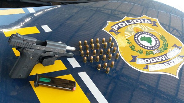 A Polícia Rodoviária Federal (PRF) apreendeu na manhã de segunda-feira, 30, durante fiscalização de rotina, uma pistola calibre .380 com munições.