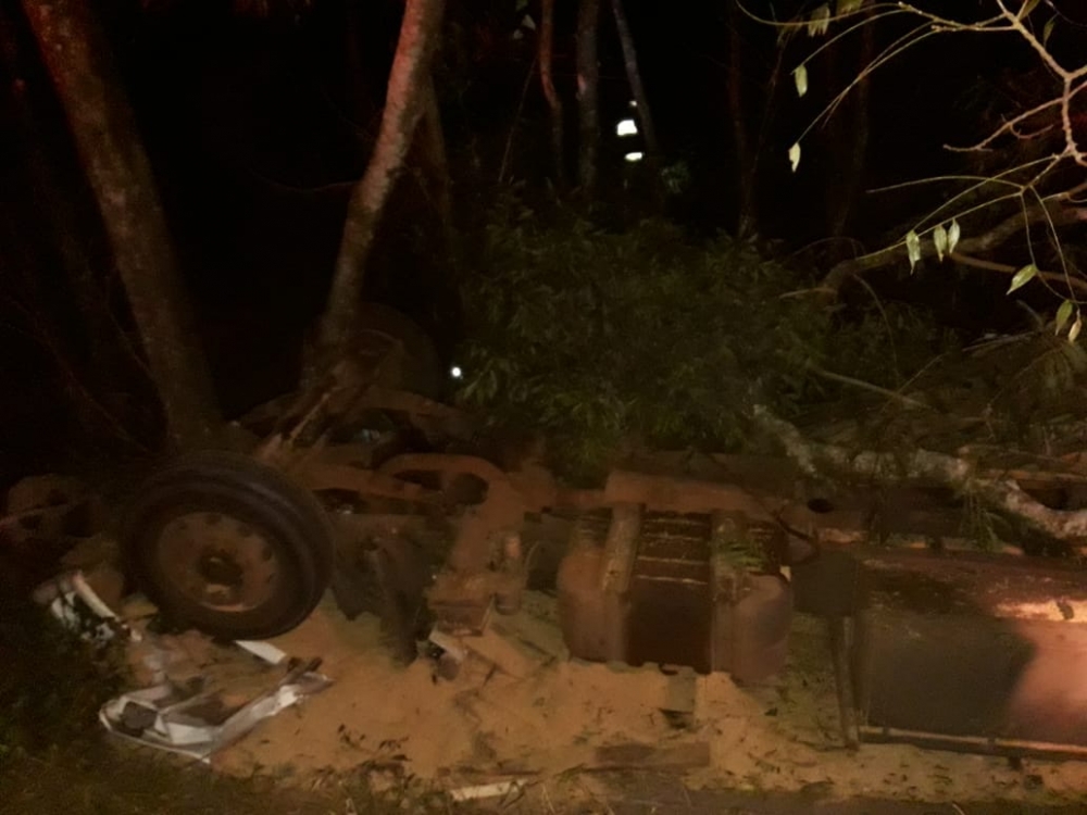 Os policiais foram acionados por volta das 20:30. Chegando ao local, identificaram que um caminhão saiu de pista e acabou capotando no acostamento. A cabine do veículo ficou totalmente destruída e não foi possível precisar o número de vítimas no momento do acidente.