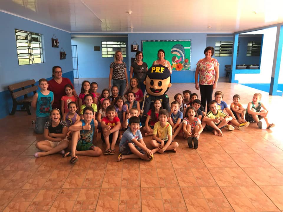 No período da tarde os agentes da PRF e a Secretária Municipal de Educação de Caiçara, professora Marliza, visitaram as Escolas 20 de Setembro e Caiçara. Ainda foi visitada a escola Ada Maria Hemielewski, de Seberi, que participou do projeto em 2017.