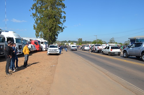 Por mais de 40 minutos, centenas de veículos de pessoas que apoiam a paralisação passaram pelo trevo de acesso principal ao município, entre eles, tratores, caminhões, automóveis de empresas e motociclistas. A mobilização desta sexta-feira, 25, recebeu o apoio de diversas entidades de classe e dos municípios da região.