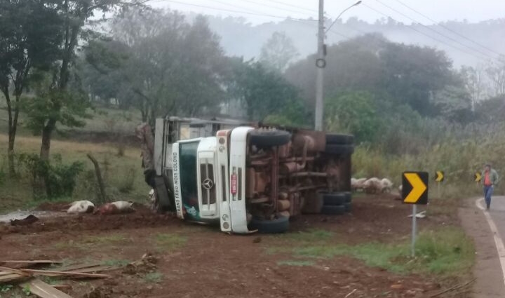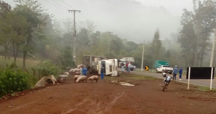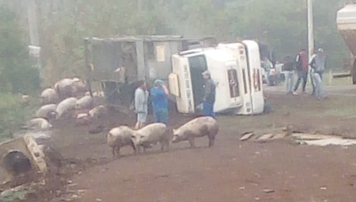 Segundo informações o motorista não sofreu ferimentos graves. Ainda não se sabe o que ocasionou o acidente. Com o impacto alguns suínos morreram outros ficaram soltos na rodovia.