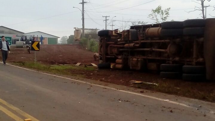Um caminhão de uma empresa de Frederico Westphalen, carregado com suínos tombou na manhã desta quinta-feira dia 28 de junho.