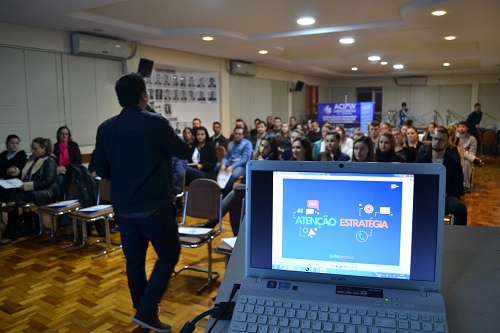 Cerca de 50 profissionais participaram do Workshop Redes Sociais para Atrair Clientes promovido pela ACIFW na noite da quinta-feira, 26, no salão nobre da entidade. Com o objetivo de levar um conhecimento prático aos participantes, o especialista Igor Binotto fez orientações pontuais sobre os erros e acertos na relação com os clientes.