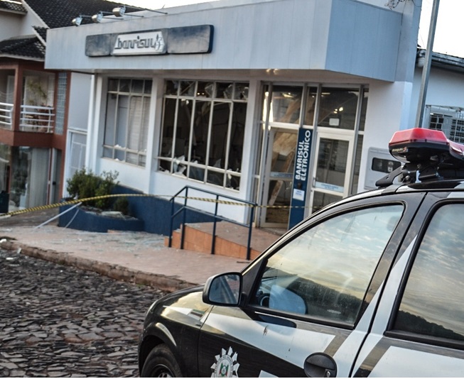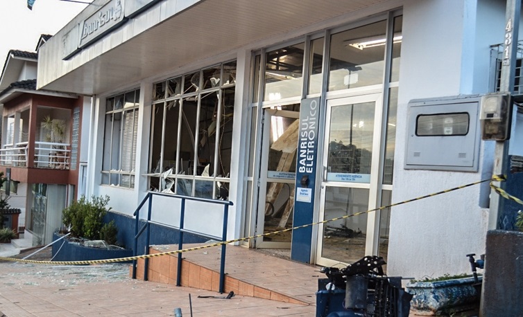 Agência do Banrisul foi alvo de ação de cinco criminosos na madrugada desta quarta-feira, 1º