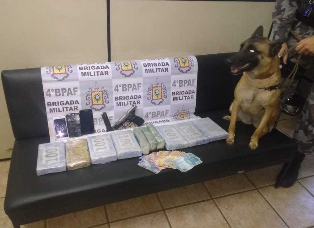 Brigada Militar estima aproximadamente 10 kg de cocaína. Havia duas crianças no veículo, que foram entregues ao Conselho Tutelar.