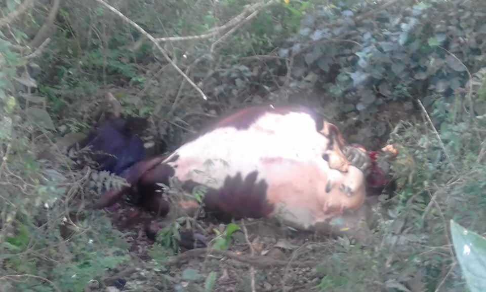 No local a proprietria encontrou a vaca de leite abatida, sendo que levaram apenas um quarto do animal.