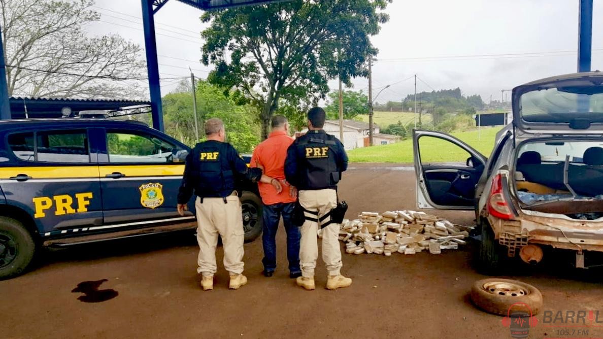 A PRF prendeu o condutor de um automvel Renault Sandero por trfico de drogas por volta do meio dia deste domingo (30), durante fiscalizao na BR 386 em Seberi.
