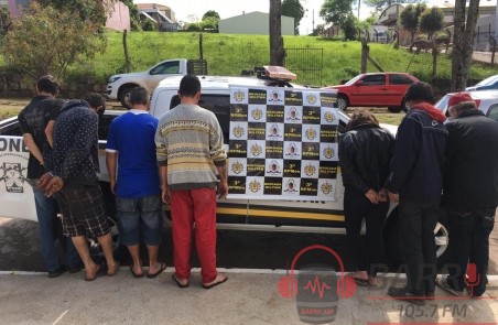 Ao perceber que seria abordado, o homem correu para o interior da residência, sendo acompanhado pela guarnição e solicitado apoio de mais viaturas. De rápida resposta foi feito o cerco e presos sete indivíduos no interior da residência e nos trilhos no fundo da casa, onde alguns deles tentaram fugir.