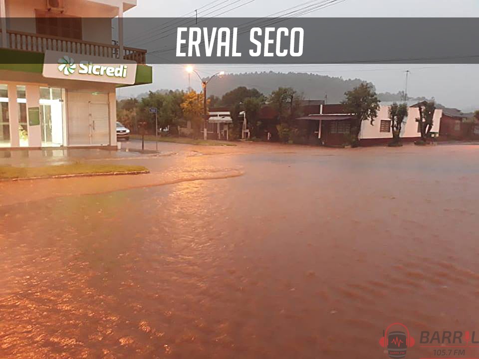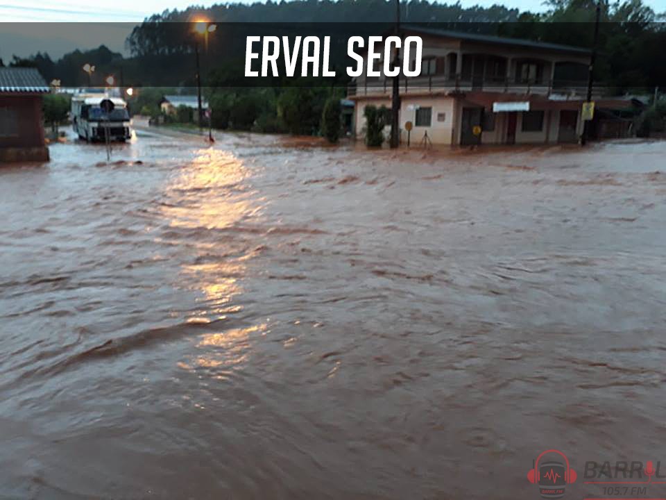 Em Erval Seco, avenidas ficaram intransitáveis, casas, empresas e entidades foram inundadas e moradores trabalham na retirada de móveis. As escolas da rede municipal estão com as aulas suspensas nesta quinta-feira, segundo informou a secretária de Educação, Roberta Mainardi. “Casas de professores, alunos e funcionários da secretaria tiveram prejuízos em suas residências, então estamos prestando auxílio. Com a forte chuva ficou inviável de se fazer o transporte dos estudantes, então suspendemos as aulas pelo menos no dia de hoje”, frisa a diretora.