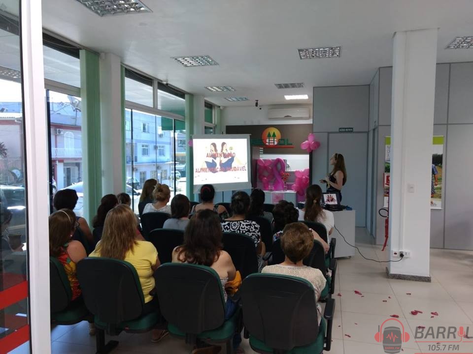 A palestra com a nutricionista Camila Perin focou na importância da alimentação saudável aliada ao tratamento adequado aos casos. A atividade contou inicialmente com espaço de acolhida e dinâmica motivacional de grupo, e no final do evento teve sorteio de brindes personalizados da cooperativa e uma confraternização com um delicioso chá da tarde entre todas as participantes. Esta foi uma ação do projeto "Na Cresol as Mulheres Cooperam".