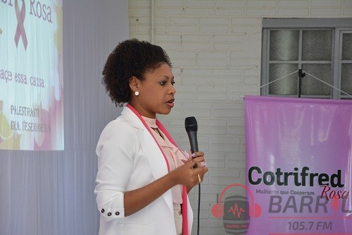 com uma participação de uma voluntária diagnostica com câncer de mama e também sorteio de 30 mamografias, doadas pela Raimed de Frederico Westphalen.