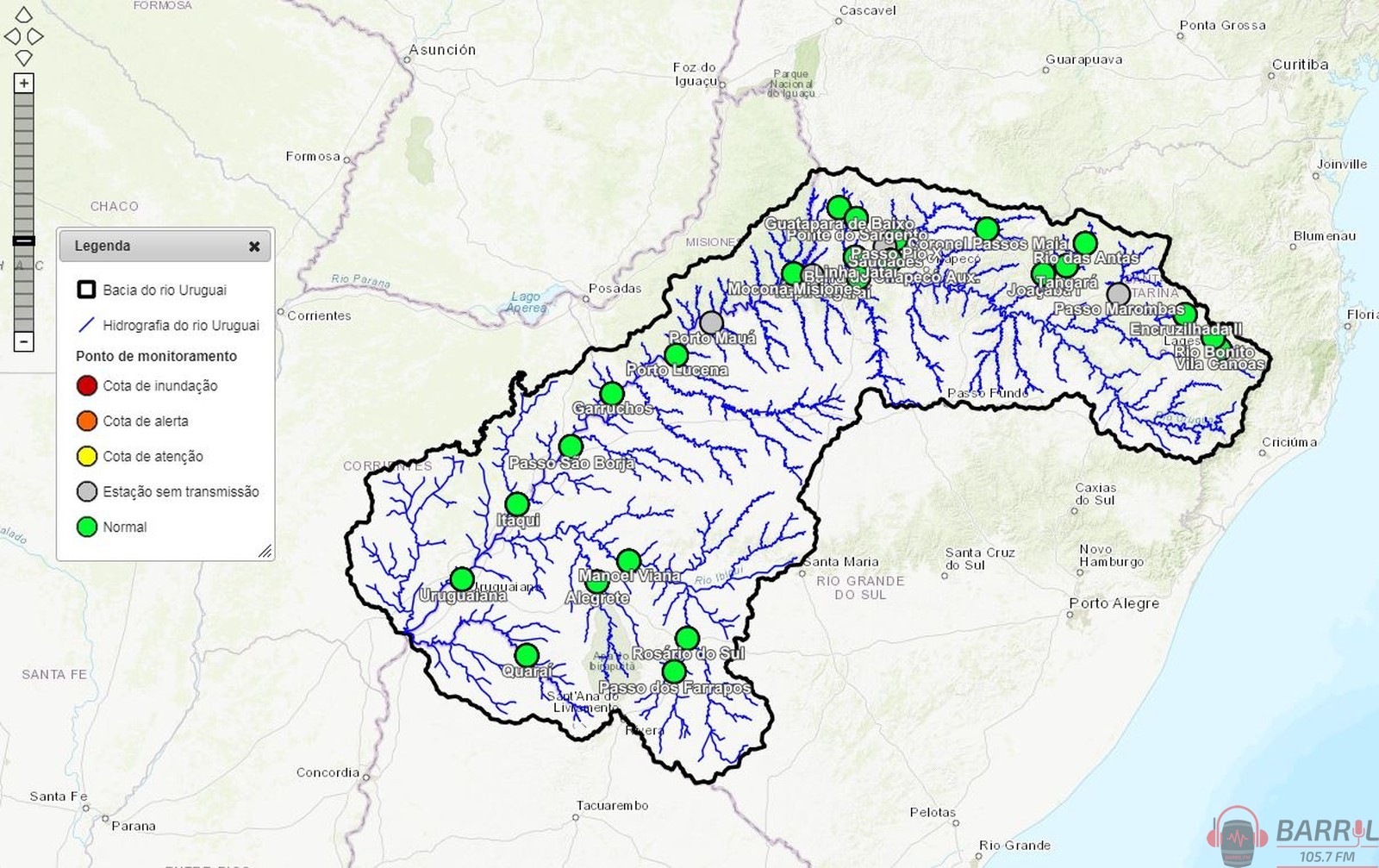 Um sistema de monitoramento controla o nível do Rio Uruguai, no Noroeste do estado, e pode ser consultado pela população, no site do Serviço Geológico do Brasil. Equipamentos instalados nas margens do rio são monitorados pela Defesa Civil, que recebe informações de hora em hora. É possível antecipar quanto o rio deve subir nas próximas horas.