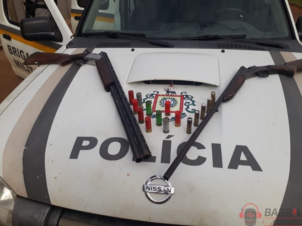 Dois homens foram presos no sábado, 13, em linha Bonita, interior de Seberi. A ocorrência foi atendida pela guarnição do Policiamento Ostensivo da Brigada Militar, que avistou uma motocicleta em que o caroneiro estava segurando duas armas longas nas mãos. Ao ser efetuada a abordagem, foi constatado que se tratava de uma espingarda marca Myura de calibre 12 e outra espingarda marca Rossi de calibre 28, ambas municiadas.