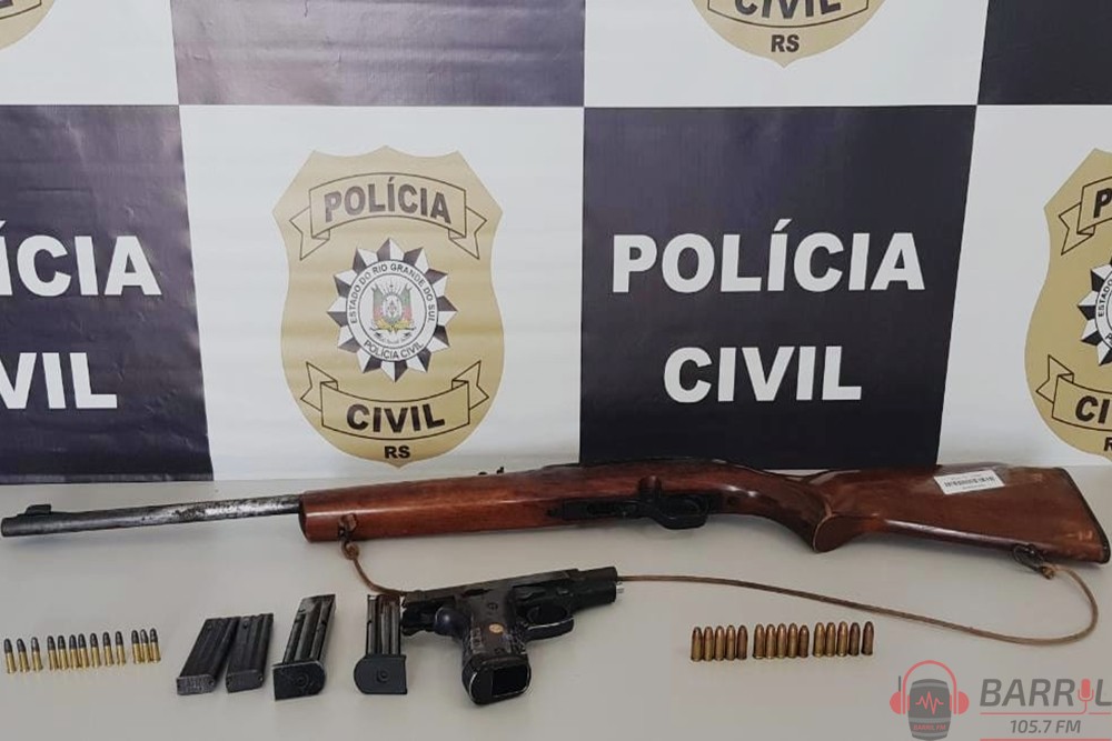 Na manhã de hoje, durante cumprimento de Mandados de Busca e Apreensão, policiais civis de Rodeio Bonito, com apoio de policiais civis de Seberi, apreenderam armas e munições, 01 espingarda cal. .22 e 01 pistola cal. 7.65 em uma residência no interior do município.