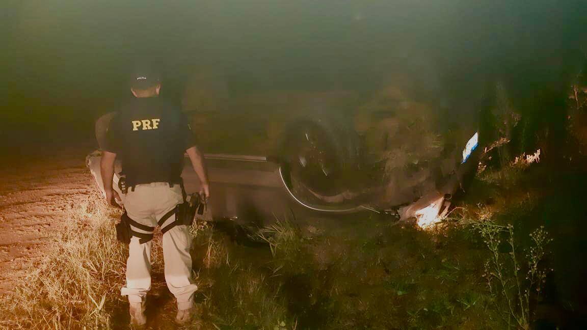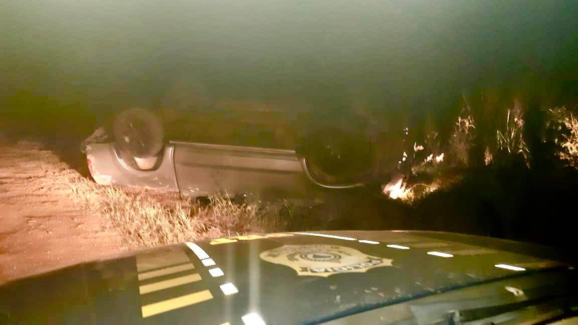 O motorista desobedeceu e fugiu da abordagem, acessando uma estrada vicinal não pavimentada. A viatura da PRF seguiu acompanhando o veículo, mas antes que conseguisse interceptá-lo, o condutor perdeu o controle da Hilux e capotou.