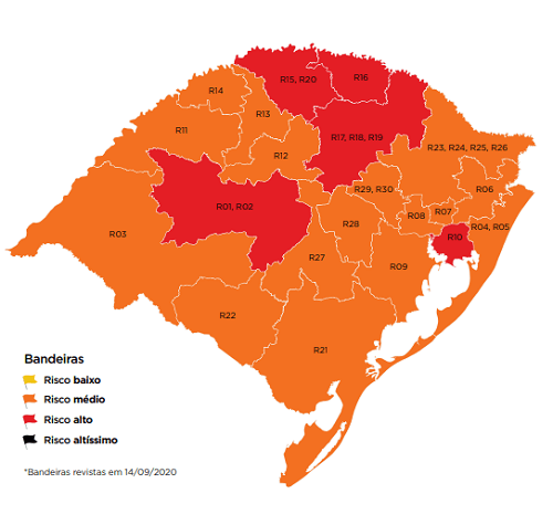 As cinco regiões que ficam em bandeira vermelha são: Porto Alegre, Palmeiras das Missões, Erechim, Passo Fundo e Santa Maria. De acordo com a Secretaria Estadual de Saúde, no Rio Grande do Sul já são 157.907 casos confirmados de Covid. Entretanto, já percebe-se uma estabilidade no número de casos ativos, o que possibilidade essa flexibilidade das bandeiras.