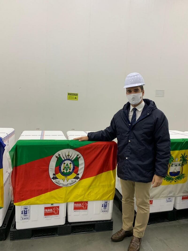 Com a autorização do Ministério da Saúde (MS), o governo do Estado antecipará o início da vacinação contra a Covid-19 no Rio Grande do Sul para esta segunda-feira, 18. O governador Eduardo Leite foi ao Centro de Distribuição Logística do MS, em Guarulhos (SP), receber de forma simbólica as primeiras 341,8 mil doses destinadas ao Rio Grande do Sul e fez o anúncio: