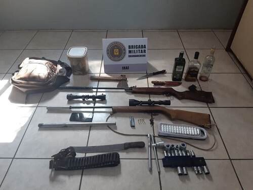 A prisão foi realizada após averiguação do furto de um barco, sendo localizado com os suspeitos uma carabina calibre 22, equipada com supressor de ruídos e luneta, uma espingarda modificada para calibre 22, equipada com supressor de ruídos, 04 cartuchos cal. 22 intactos e um cartucho deflagrado, uma aparelho de telefone celular, uma faca de cozinha, um punhal, um facão, uma luneta, uma machadinha, além de duas garrafas de whisky.