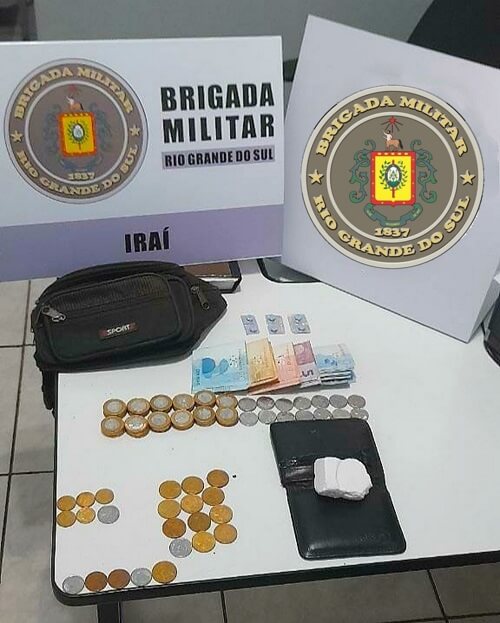 Na ação foram apreendidos R$569,00 (quinhentos e sessenta e nove reais), uma pochete preta, 60 gr de cocaína e seis comprimidos de Citrato de Sildenafila.