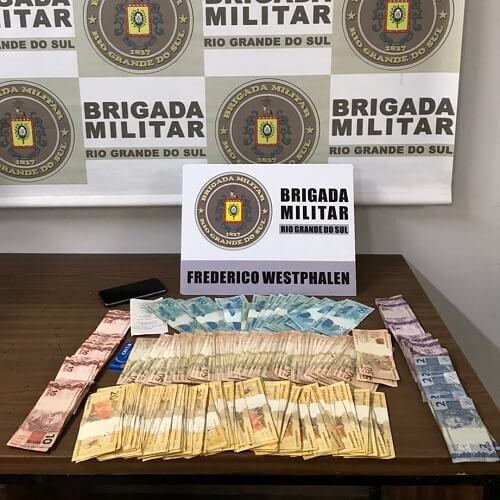 Após abordagem policial na manhã desta segunda-feira, 26, policiais do 37° Batalhão de Polícia Militar, apreenderam a quantia de R$ 9.980,00 em espécie e um celular em Frederico Westphalen.