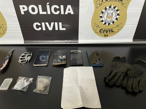 Foram encontradas drogas, um canivete, uma soqueira, um par de luvas possivelmente usado no homicídio, aparelhos celulares e documentos. O adolescente será encaminhado à CASE de Passo Fundo, onde ficará à disposição da Justiça.