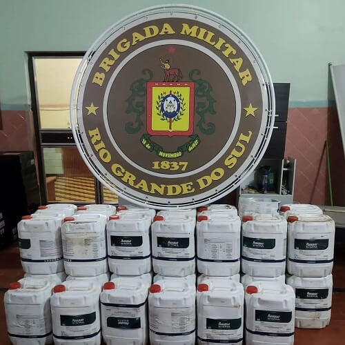 Foram apreendidos 34 galões de agrotóxicos de origem estrangeira