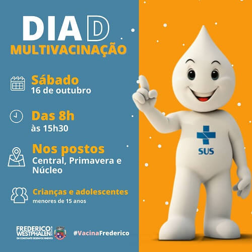 No próximo sábado, 16, haverá Dia D da vacinação para regularização da caderneta de vacina de crianças e adolescentes menores de 15 anos em Frederico Westphalen.